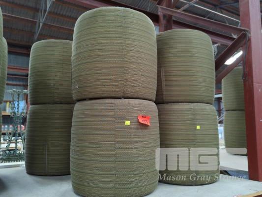 8 x GREEN FABRIC UPHOLSTERED ROUND FOOT STOOLS