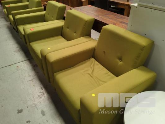 3 x GREEN FABRIC UPHOLSTERED VISITORS ARM CHAIRS