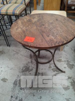 WROUGHT IRON BASED CIRCULAR OCCASIONAL TABLE & BLONDEWOOD COFFEE TABLE