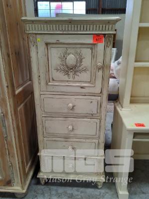 RUSTIC PAINTED CABINET WITH SINGLE DOOR CABINET STORAGE & 4 DRAWER UNDERSTORAGE