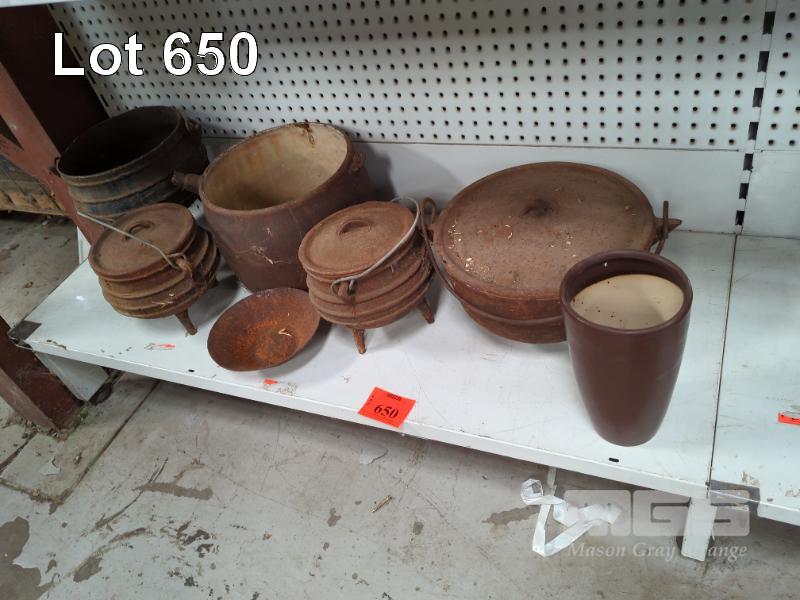ASSORTED CAULDRONS & CAMP OVEN