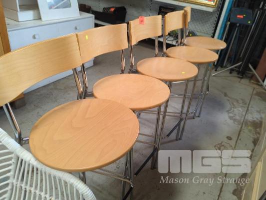 5 x BEECHWOOD STOOLS WITH CHROME FRAMES