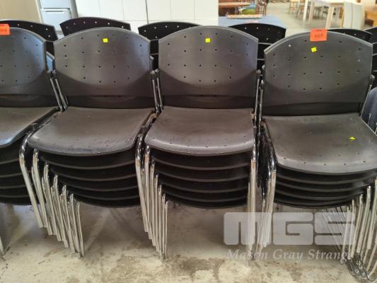 18 x BLACK MOULDED PLASTIC STACKABLE CONFERENCE CHAIRS, CHROME FRAME, INTERLOCKABLE