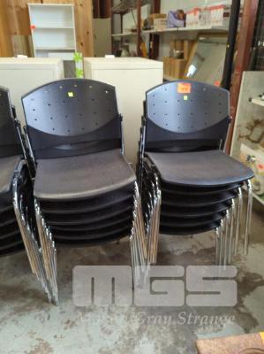 12 x BLACK MOULDED PLASTIC STACKABLE CONFERENCE CHAIRS, CHROME FRAME, INTERLOCKABLE