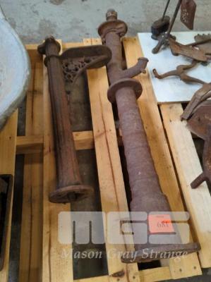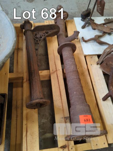2 x CAST POTS, 1 x WELL PUMP (HEAD INCOMPLETE)