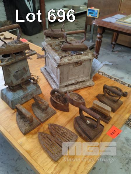 THE ELGIN GRILLS IRON WARMER, CAST CASING ENAMELED IRON WARMER & COLLECTION IRONS & TRIVETS