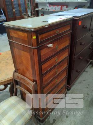 MAHOGANY VENEERED MARBLE TOPPED SECRETAIRE