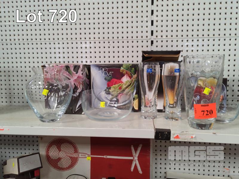 ASSORTED GLASSWARE, BOWLS, VASES, ETC