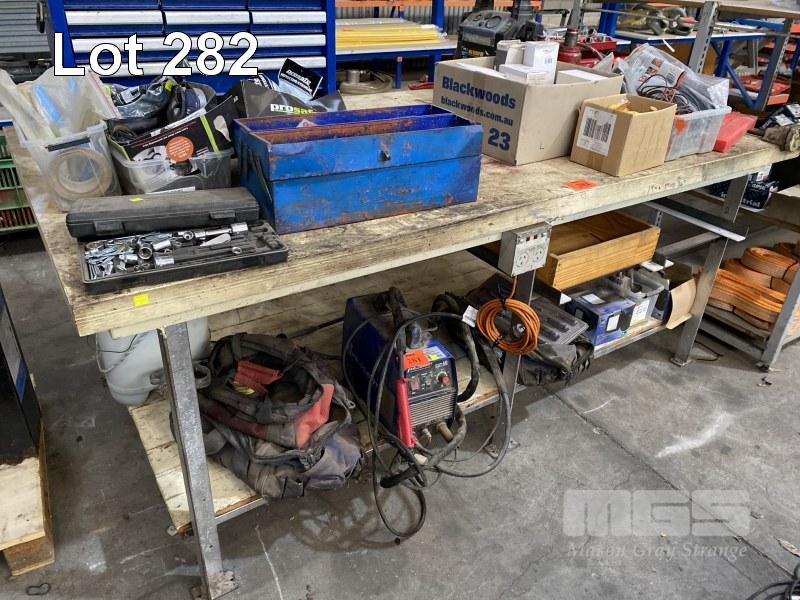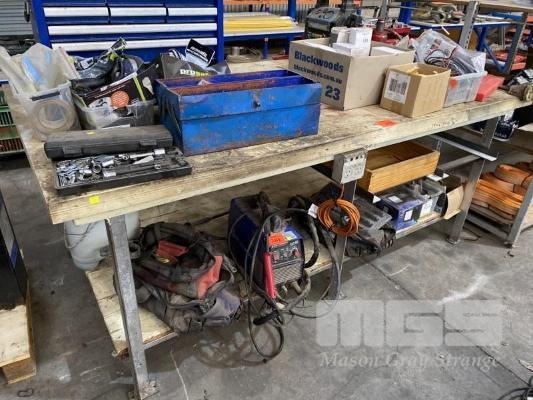 WORKSHOP BENCH, 2100 x 1100mm WITH 55mm THICK PLYWOOD TOP & VICE