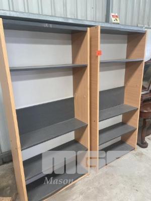 2 x BOOKSHELVES, TIMBER LAMINATE & 2 x TIMBER LAMINATE KITCHEN TABLES