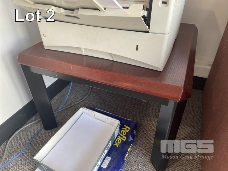 2 SEATER COUCH, SMALL COFFEE TABLE & GLAZED WALL PRINT