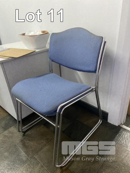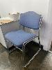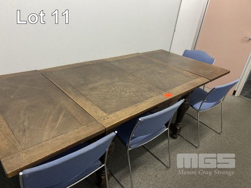 7 x BLUE FABRIC, CHROME FRAME CHAIRS & TIMBER EXTENSION TABLE
