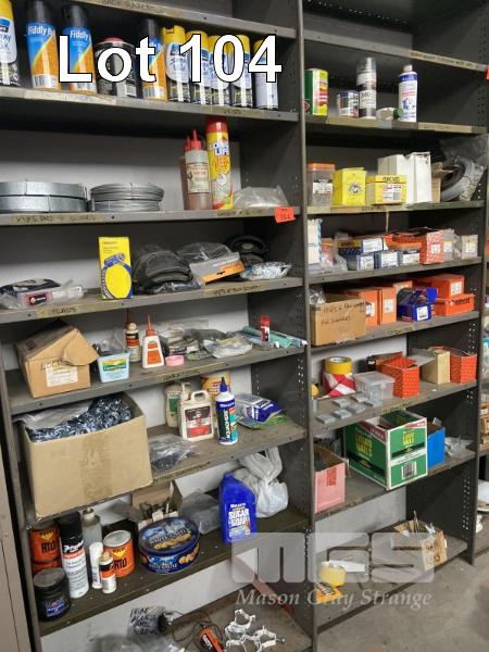 SPRAY PAINTS, HARDWARE, OILS, BRACKETS, CLAMPS, GALV STRIP, GALV WIRE CONTENTS 2 x BAYS SHELVING