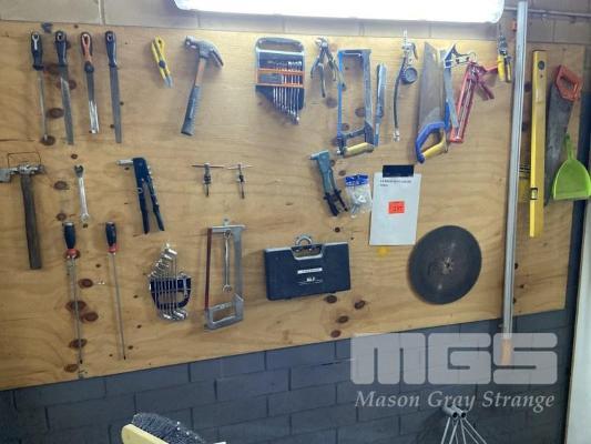 TOOL SHADOW BOARD INC FILES, SPANNERS, RIVET GUNS, SAWS, DRIVERS, TAPS, ETC