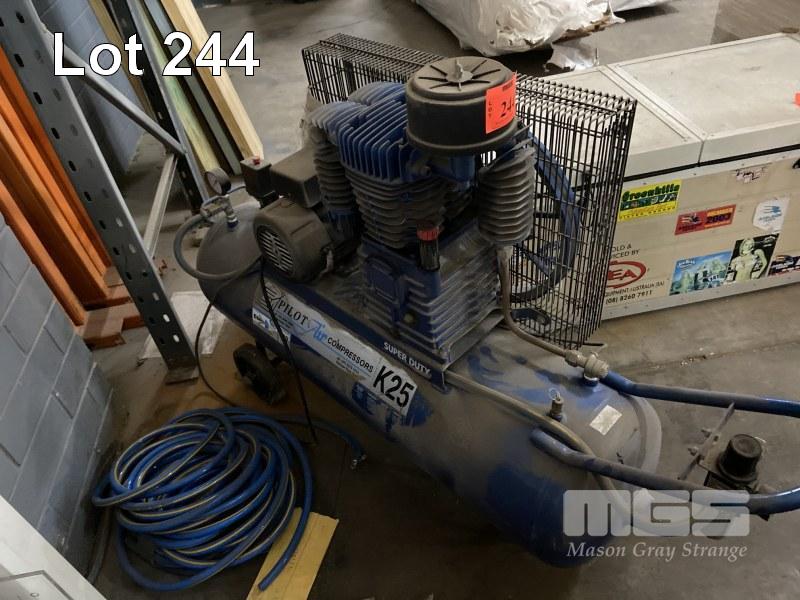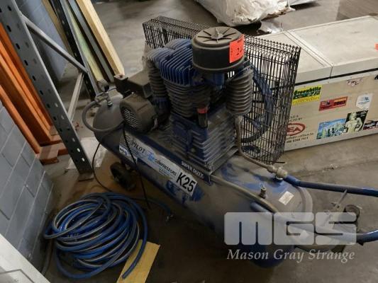 WORKSHOP COMPRESSOR, PILOT AIR MOD: K25 TWIN CYLINDER, 2 STAGE POWERED BY 3HP 240V MOTOR WITH AIR REG