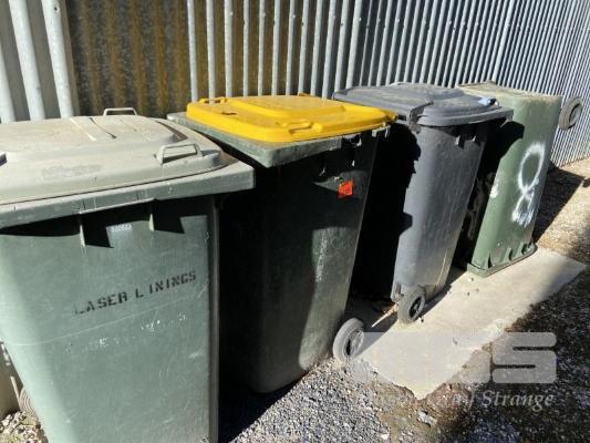 4 x LARGE WHEELIE BINS, GREEN, 240 LITRE, 3 WITH LIDS, 1 WITHOUT LID