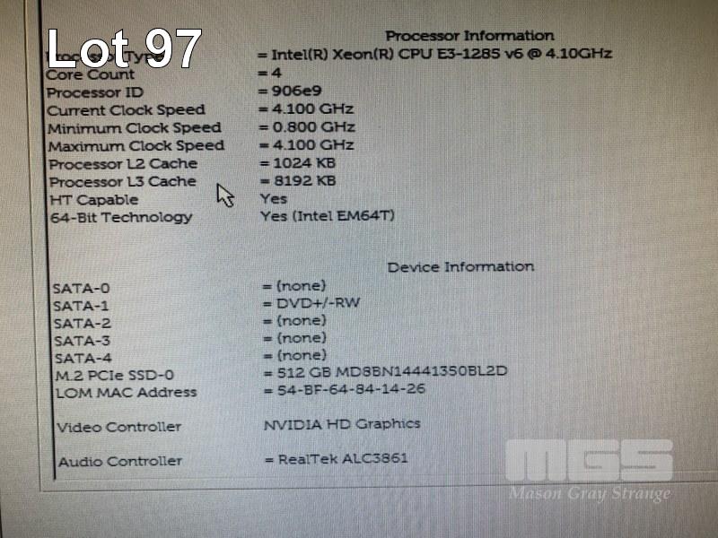 MINI-TOWER PC, DELL PRECISION TOWER 3620 WORKSTATION, XEON E3-1285 v6 @ 4.1GHz, 32GB DDR4 RAM, 512GB NVMe M.2 SSD, DVD-RW, CARD READER, 8GB NVIDIA QUADRO P4000 VIDEO (4 DP), WINDOWS 10 PRO INSTALLED, KEYBOARD & MOUSE S/N:HKR50T2