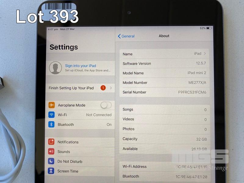 APPLE iPAD MINI 2, 32GB, Wi-Fi, SPACE GREY, MODEL A1489 WITH CABLE (NO CHARGER) S/N:F9FRC531FCM6