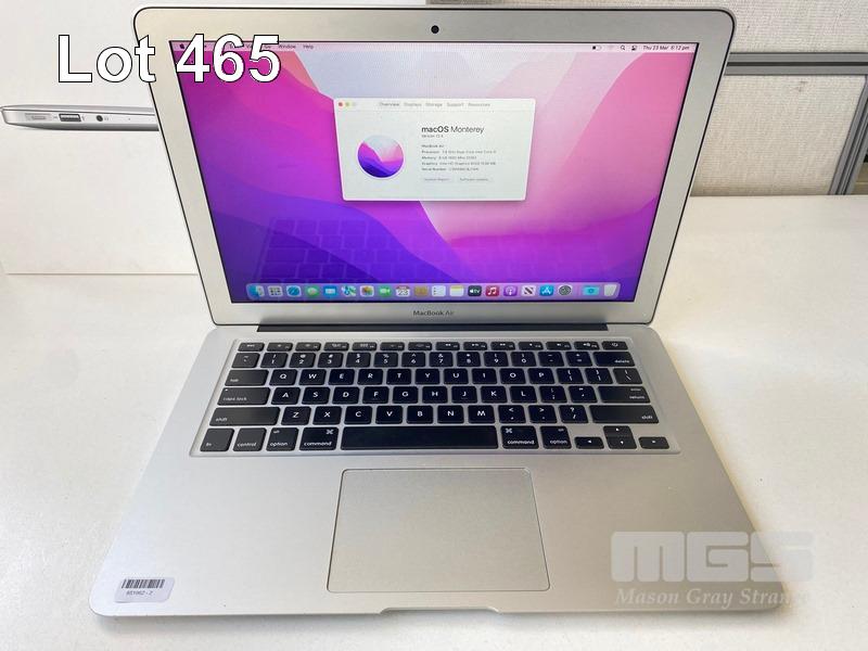 LAPTOP, APPLE MACBOOK AIR (A1466), CORE i5 5350U (5TH GEN) @ 1.8GHz, 8GB DDR3 RAM, 128GB SSD, 13.3" WIDESCREEN (1440x900), INTEL HD GRAPHICS 6000, Wi-Fi, BLUETOOTH, MAC OS 12 INSTALLED & POWER SUPPLY S/N:C1MW86CBJ1WK