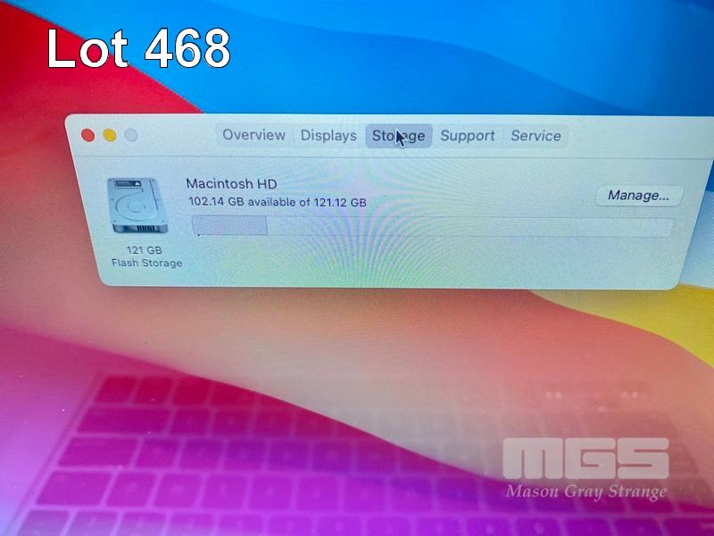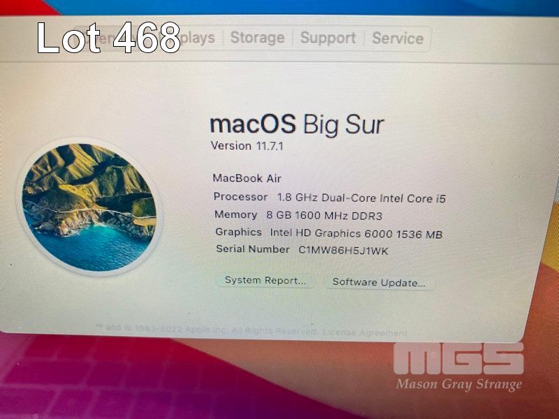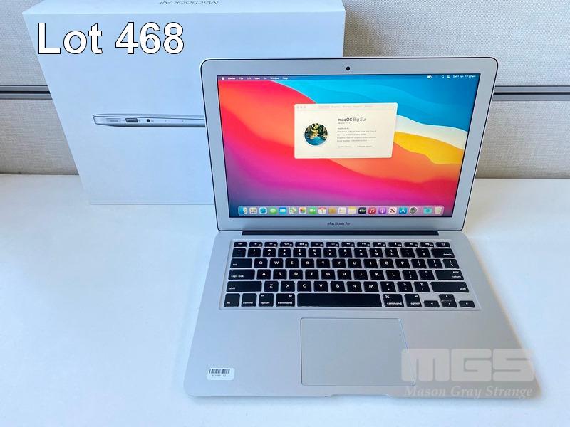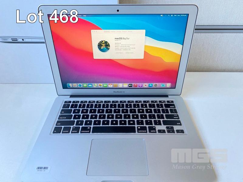 LAPTOP, APPLE MACBOOK AIR (A1466), CORE i5 5350U (5TH GEN) @ 1.8GHz, 8GB DDR3 RAM, 128GB SSD, 13.3" WIDESCREEN (1440x900), INTEL HD GRAPHICS 6000, Wi-Fi, BLUETOOTH, MAC OS 11.7 INSTALLED & POWER SUPPLY S/N:C1MW86H5J1WK