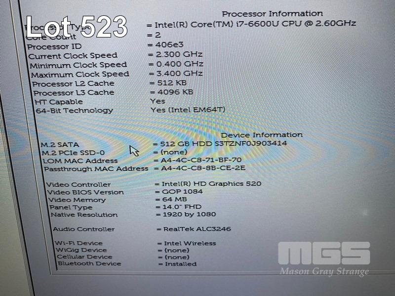 LAPTOP, DELL LATITUDE 7480, CORE i7 6600U (6TH GEN) @ 2.6GHz, 16GB DDR4 RAM, 512GB M.2 SSD, 14" WIDESCREEN (1920x1080), INTEL HD GRAPHICS 520, Wi-Fi, BLUETOOTH, WINDOWS 10 HOME INSTALLED & POWER SUPPLY (NOTE: SMALL WHITE SPOT SCREEN BLEMISHES) S/N:25RDQH2