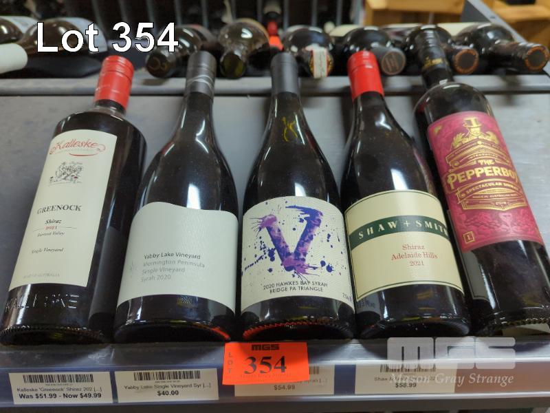 ASSORTED AUSTRALIAN & NZ SHIRAZ (PART RACK) 1 X 2018 THE PEPPERBOXBOX SHIRAZ. 750ML. 4 X 2021 SHAW & SMITH SHIRAZ 750ML 4 X 2020 VANGUARDIST HAWKE"S BAY SYRAH 750ML 7 X 2020 YABBY LAKE SINGLE VINEYARD SYRAH 750ML 9 X 2021 KALLESKE "GREENOCK" SHIRAZ 750ML 2 X 2021 TOM SHOBBROOK "POOLSIDE" SYRAH 750ML