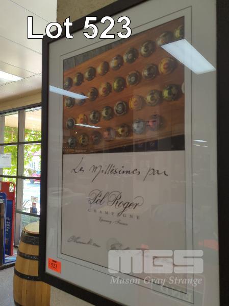 2 X PIECES OF WINE WALL ART. HENSCHKE HILL OF GRACE POSTER FRAMED & GLAZED AND CHAMPAGNE POSTER FRAMED & GLAZED.