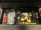 MULTI DRAWER TOOL BOX, BLACK STEEL, STRATCO & CONTENTS OF HAND TOOLS INC SAWS, HAMMERS, PLIERS, SPANNERS ALLEN KEYS ETC