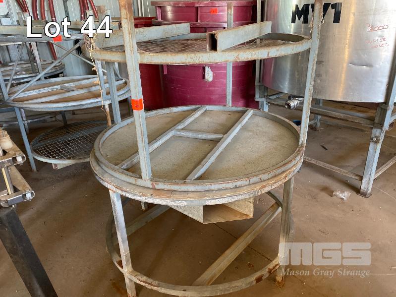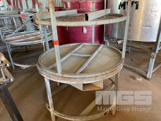 2 x CIRCULAR STEEL FERMENTER STANDS, 1500m DIAMETER, APPROX