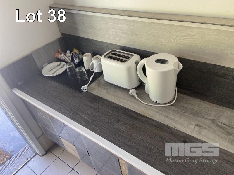 ROOM 10 CONTENTS DOUBLE BED, BAR FRIDGE, MICROWAVE, TOASTER & KETTLE, AVA 32" TV WITH REMOTE MOD: 32SSI SIDE TABLE, COUCH & COFFEE TABLE EUROMATIC WALL MOUNT A/C, IRON & BOARD