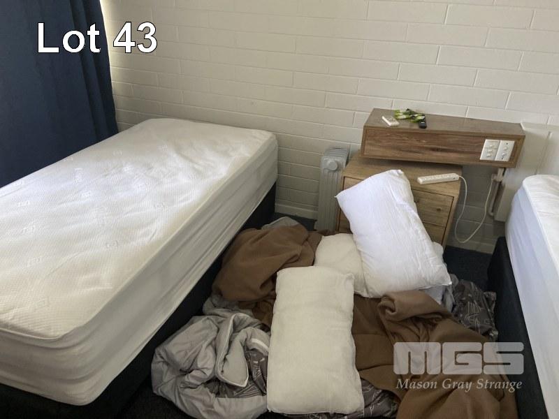 ROOM 16 CONTENTS DOUBLE & SINGLE BED, BAR FRIDGE, MICROWAVE, TOASTER & KETTLE, AVA 32" TV WITH REMOTE MOD: 32SSI SIDE TABLE, COUCH & COFFEE TABLE KELVINATOR WALL MOUNT A/C, IRON & BOARD