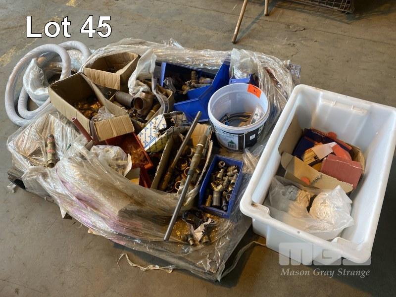 PALLET LOT, BRASS GAS/PLUMBING FITTINGS, VALVES, COPPER JOINERS, ETC.