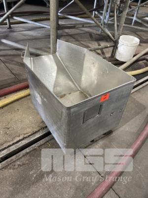 STAINLESS STEEL BIN, 1/4 CUBIC METER WITH POURER & FORK POCKETS NO WHEELS