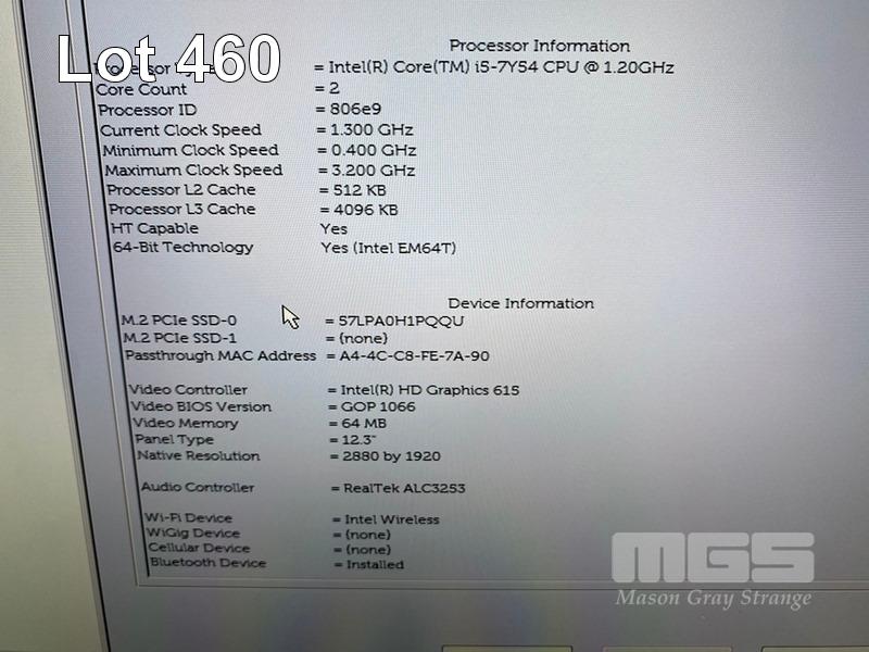 TABLET PC, DELL LATITUDE 7285, CORE i5 7Y54 (7TH GEN) @ 1.2GHz, 8GB DDR3 RAM, 256GB NVMe M.2 SSD, 12.3" TOUCHSCREEN (2880x1920), INTEL KABYLAKE GRAPHICS, Wi-Fi, BLUETOOTH, WINDOWS 10 HOME INSTALLED, KEYBOARD & CARRY BAG (NO USB-C POWER SUPPLY, NO STYLUS) WITH DELL D6000 USB-C DOCKING STATION & 130W POWER SUPPLY S/N:J7R24M2