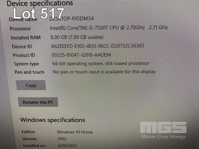 TINY-IN-ONE PC, LENOVO THINKCENTRE M710q, CORE i5 7500T (7TH GEN) @ 2.7GHz, 8GB DDR4 RAM, 256GB SSD, TIO24Gen3 23.8" LED-BL LCD WIDESCREEN, WEBCAM, Wi-Fi, WINDOWS 10 HOME INSTALLED & POWER SUPPLY (NO KEYBOARD, NO MOUSE) S/N:PC0SCU47