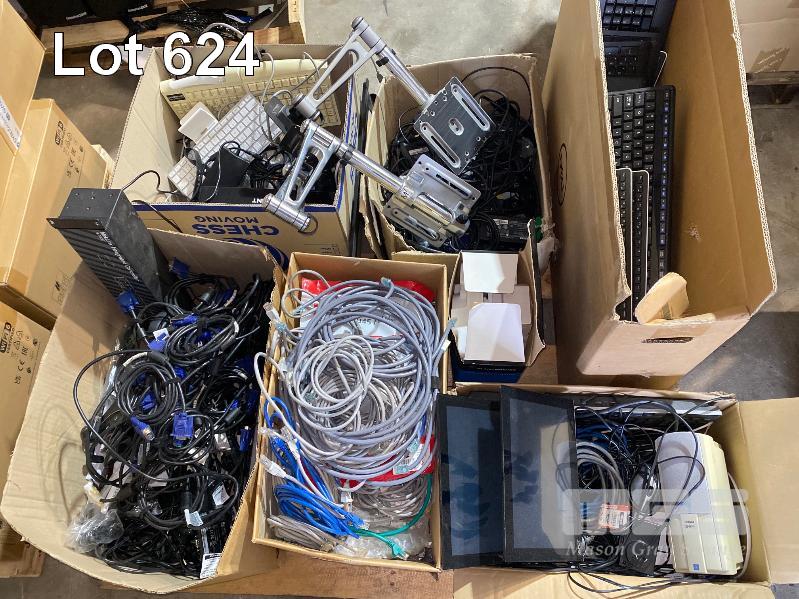 1 x PALLET LOT ASST CABLES, POWER SUPPLIES, CORDLESS KEYBOARDS (NO RECEIVERS), AMX PANELS ETC