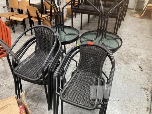 60cm DIAMETER, GLASS TOP TABLE & WICKER CHAIRS