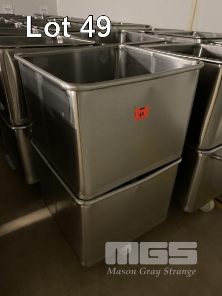 16 x STAINLESS STEEL MOBILE BINS, 200L, STACKABLE