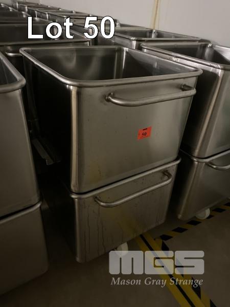 16 x STAINLESS STEEL MOBILE BINS, 200L, STACKABLE