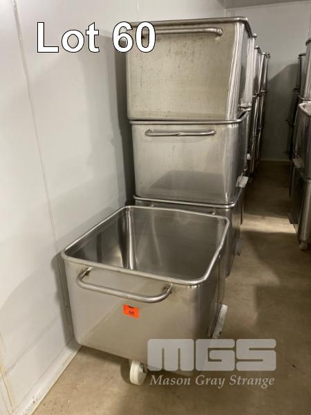 16 x STAINLESS STEEL MOBILE BINS, 200L, STACKABLE