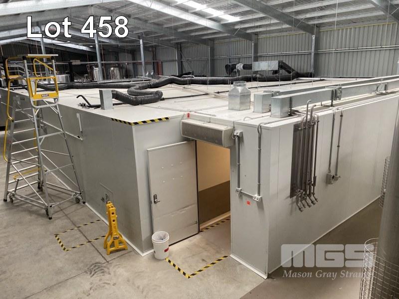 LARGE SCALE INSULATED PANEL CLEAN ROOM, FLOORLESS, SUIT MEDICAL FACILITY, FOOD PRODUCTION, COOL ROOM CONVERSION COMPRISES OF ENTRANCE HALL: 4.9 x 1.8 x 2.4m (H) APPROX ROOM 1: 7 x 6 x 2.4m (H) APPROX ROOM 2: 16 x 13 x 2.4m (H) APPROX ROOM 3: 10 x 13 x 2.4m (H) APPROX INCLUDES: FLURO LIGHTING, ALL GPO'S, MITSUBISHI AIR CURTAIN, MODEL: GK-3512SA-AUS, 240v, DUCTWORK ON ROOF OF UNIT. DOES NOT INCLUDE: STAINLESS STEEL PIPING, COPPER PIPING ETC. BUYER TO REMOVE