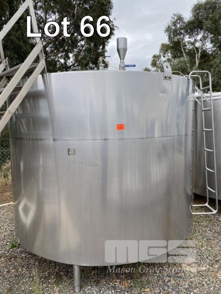 FRIGRITE STAINLESS STEEL UPRIGHT JACKETED TANK, 7,000L CAP, SIDEMOUNT INSPECTION HATCH