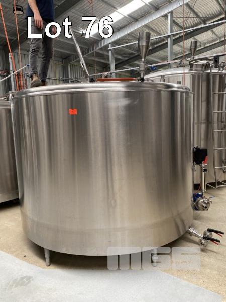STAINLESS STEEL UPRIGHT JACKETED TANK, 7,000L CAP APPROX, TOPMOUNT INSPECTION HATCH, WITH SEW AGITATOR & CENTRIFUGAL PUMP, 240v
