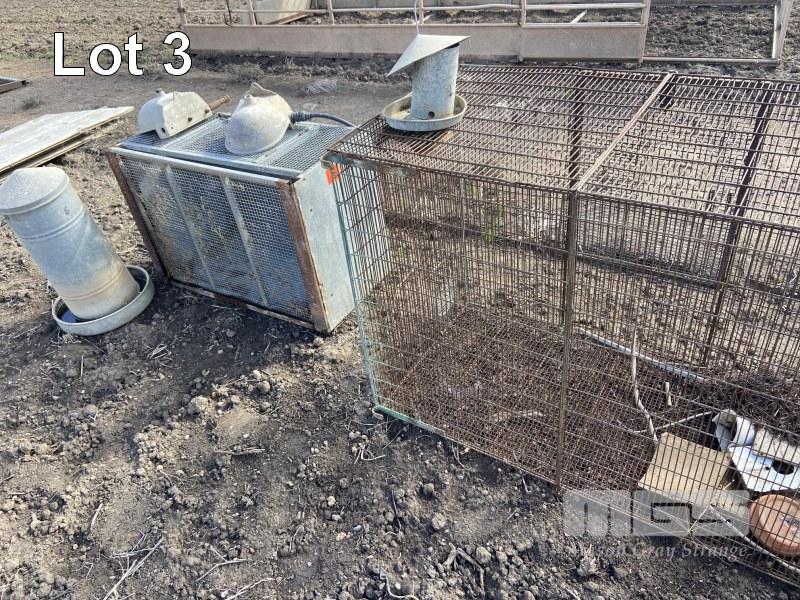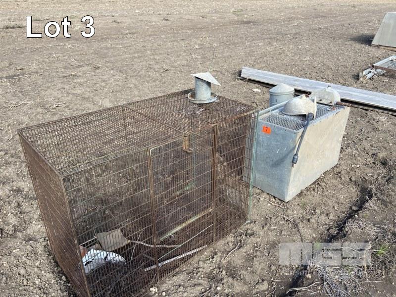 MESH ANIMAL CAGE, 1200 x 600 x 850mm, GALV MESH BIRD CAGE, 800 x 600 x 400mm WITH SLIDE OUT TRAY & ASSORTED WATER & FEED BOWLS