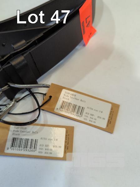 2 X THRILLS MEN'S WIDE LEATHER BELTS. SIZE SMALL-MEDIUM.