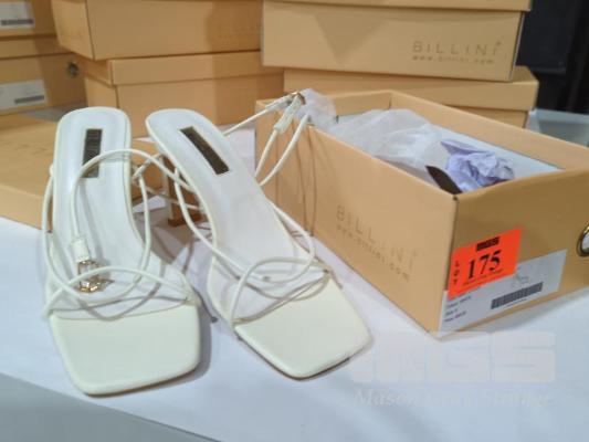 1 X PAIR BILLINI MID HEEL MULE WITH STRAP SIZE 8. STYLE: OTILLA COLOUR: WHITE
