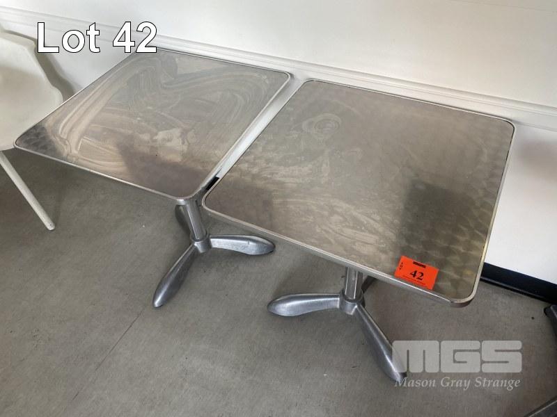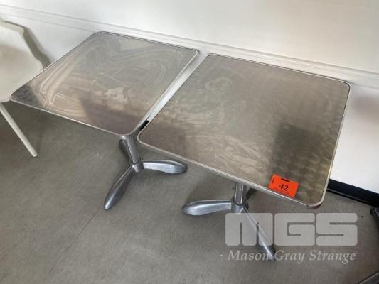 2 x SQUARE STAINLESS STEEL CAFE TABLES, 600 x 600mm