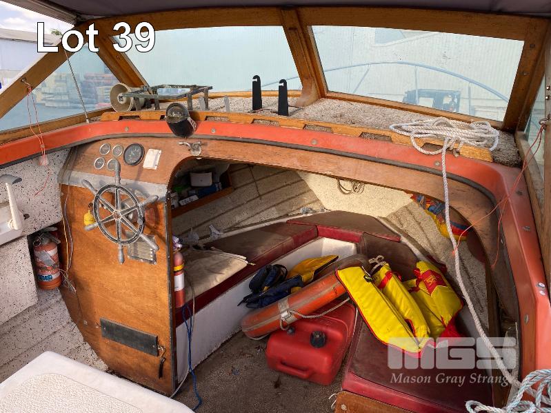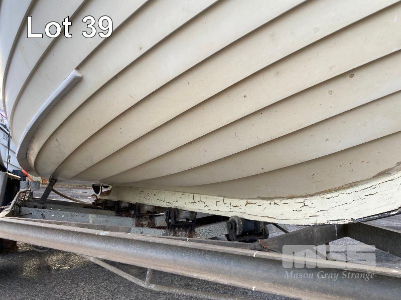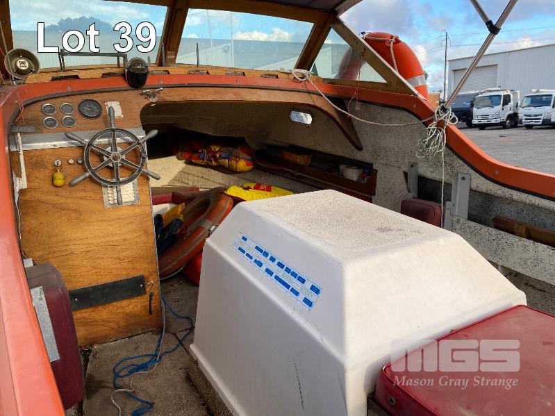 HALF CABIN FIBREGLASS BOAT, GEE CRAFT, 5.9m MARINE REG: TB248S HIN: AUTSA033641BX9 POWERED BY HOLDEN 186 ENGINE, IN BOARD WITH JOHNSON 8 OUTBOARD AUXILIARY WITH MARINE REG PAPER ON TANDEM AXLE TRAILER REG: YAE 828 DOM: 1985 GALV STEEL BALL HITCH, BRAKES' ELECTRIC WINCH WITH PAPERS