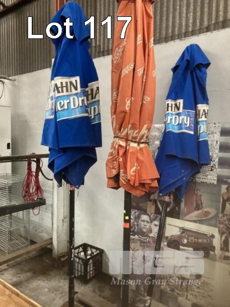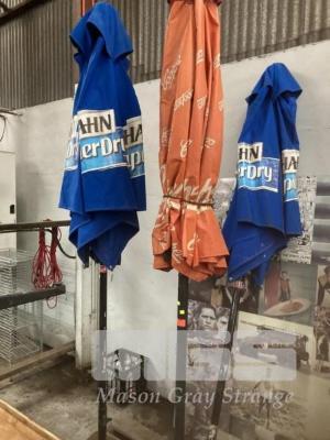 2 x MARKET UMBRELLAS, "COOPERS" & "HAHN SUPER DRY"