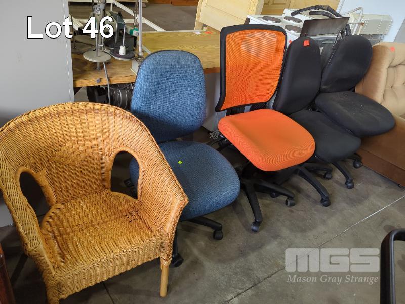 5 X GAS LIFT CHAIRS AND RATTAN ARMCHAIR